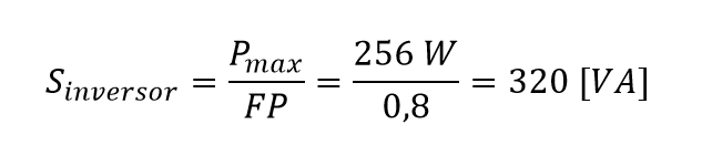 La potencia aparente que deberá tener el inversor puede ser calculada a partir de la siguiente ecuación: