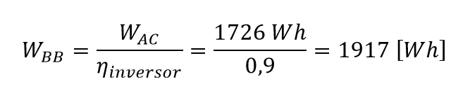 donde WAC es el requerimiento energétivo obtenido a partir de la Tabla 1 y ƞinversor es la eficiencia del inversor seleccionado (dato placa).