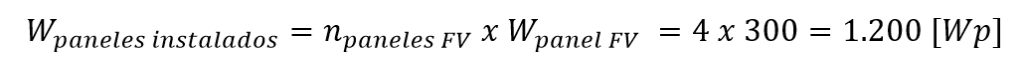 Por ejemplo, si la instalación está formada por 4 paneles solares con una potencia de 300 Wp por panel tenemos una potencia total de 1.200 Wp. Este valor de potencia corresponde a 1.200 kWh de electricidad en condiciones teóricas (radiación solar de 1000 W/m2 perpendicular sobre el panel y temperatura de la placa de T = 25 °C).