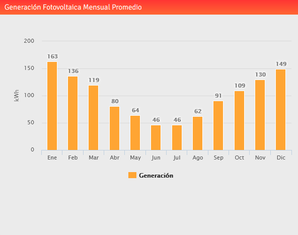 Finalmente, sumado los resultados mensuales se obtiene una generación anual de 1,2 MWh. Se recuerda que los valores de radiación solar utilizados en los cálculos son valores promedio generados con muchos años de datos medidos, por lo que el cálculo siempre es una estimación.